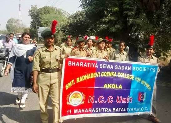 NCC unit has been started since 1972-73 in SMT Radhadevi Goenka College for women, Akola. NCC is an armed students organization under defense ministry of India. This company of NCC is working under 11 Maharashtra Battalion NCC Akola, whose commanding officer is col. Sanjay Pande . Group headquarter of NCC is in Amravati and NCC directorate is in Maharashtra and main office of Director General NCC is in New Delhi.