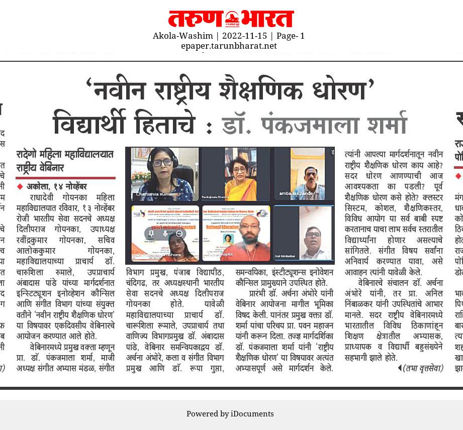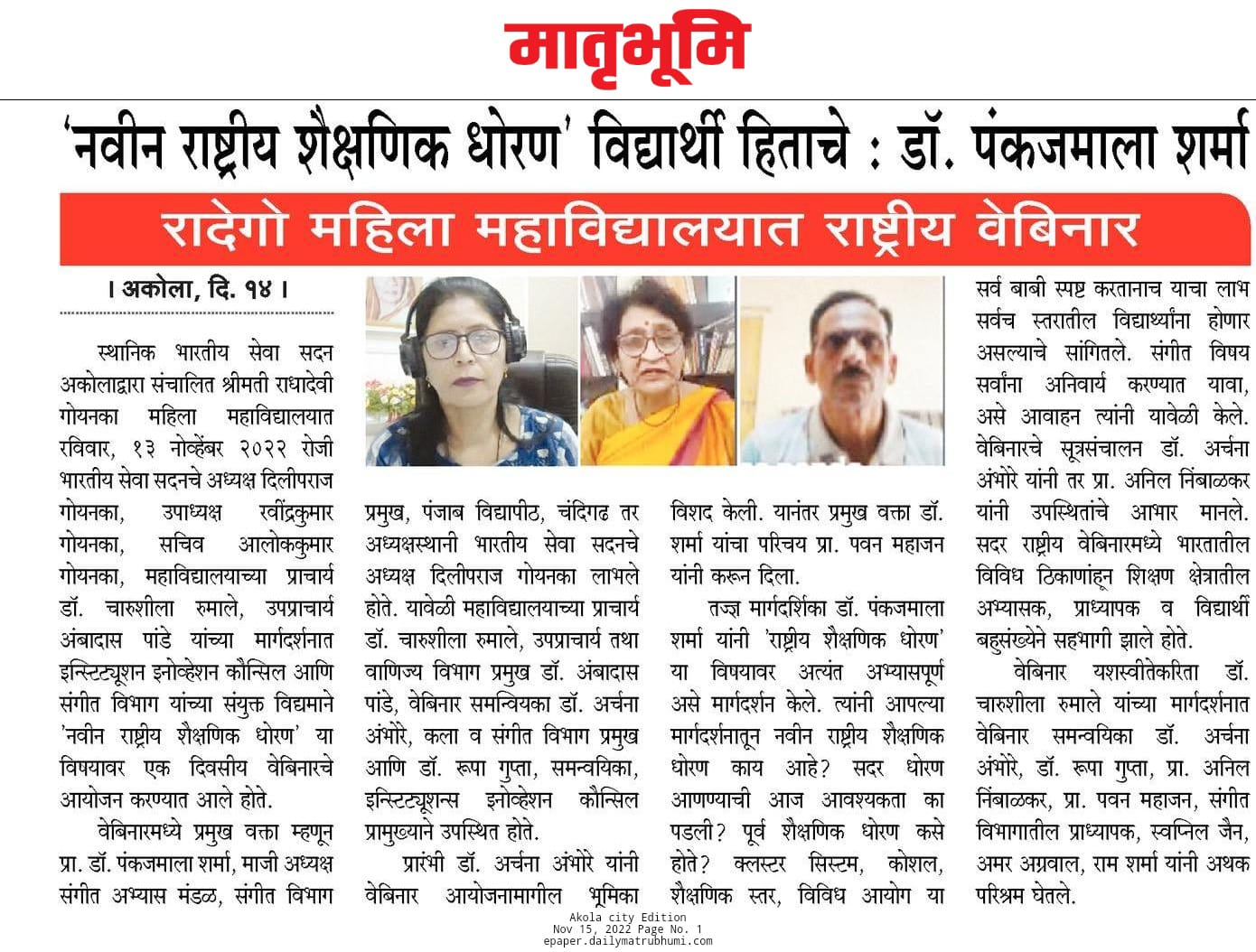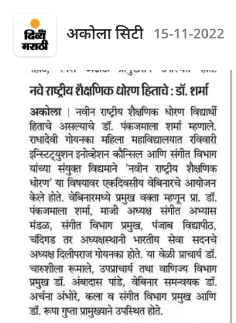 Organized by Institution’s Innovation Council & Music of Smt. Radhadevi Goenka College for Women, Akola (Maharashtra)