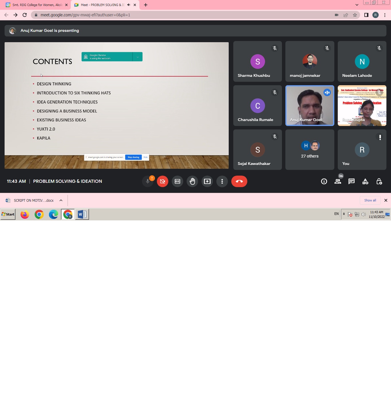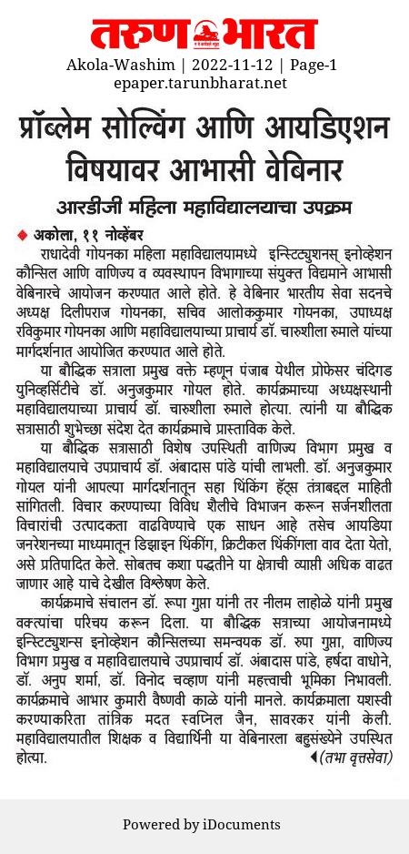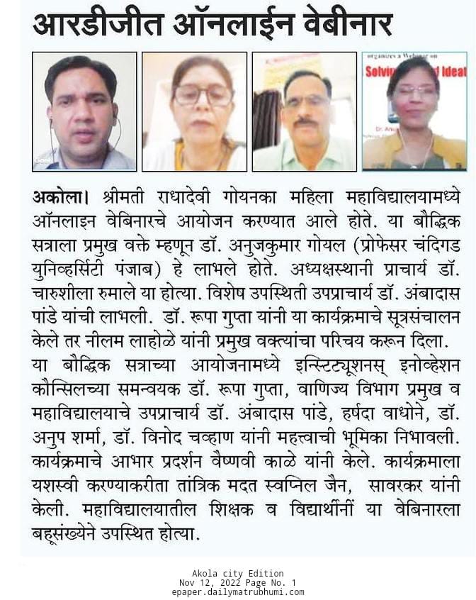 Topic: Webinar on Problem Solving & Ideation