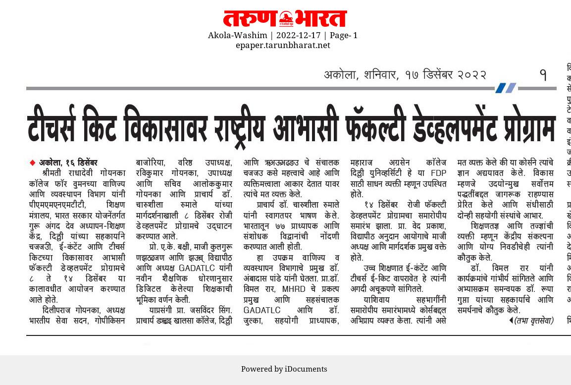 Assos.Prof. Maharaj Agrasen College, Delhi University.