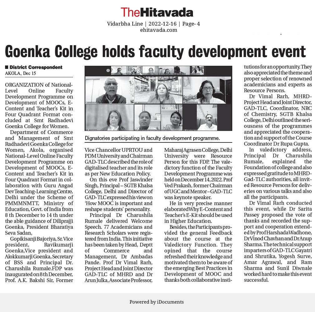 Topic: One Week National Online Faculty Development Program/Certificate Course On Development of MOOCs, e-Content and Teacher’s e-Kit in Four Quadrant Format