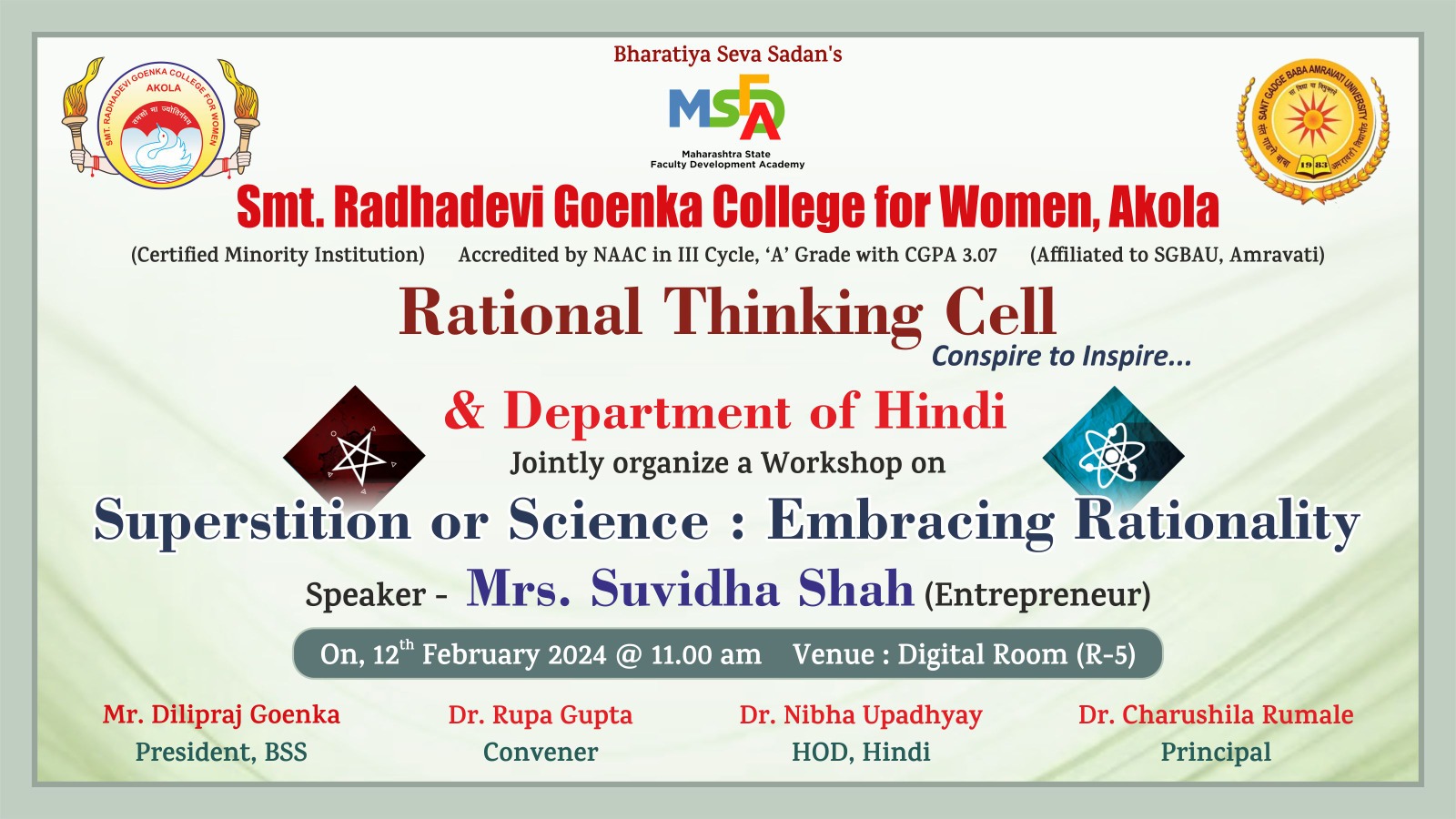 Workshop Topic - Superstition or Science : Embracing Rationality