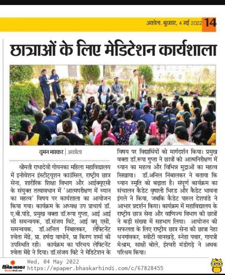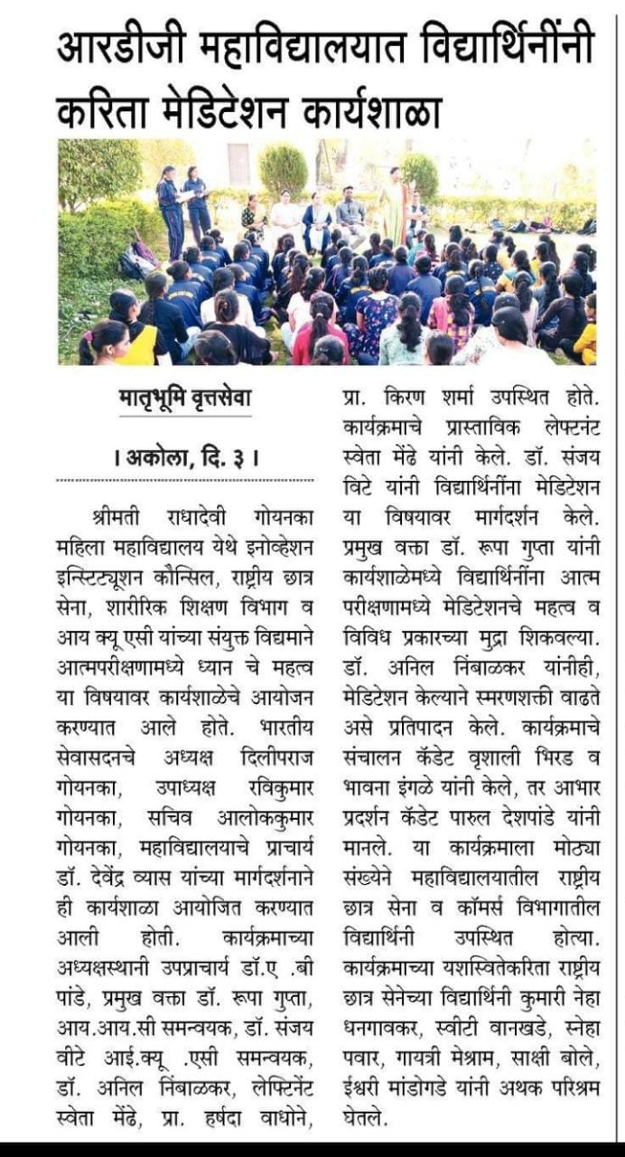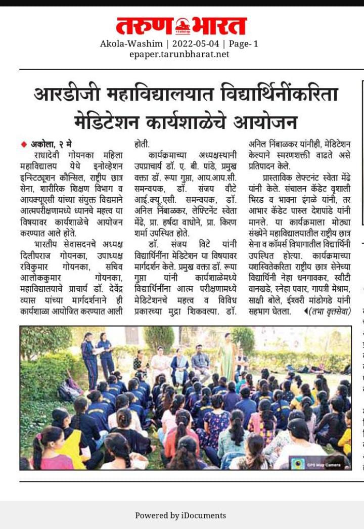 We conducted Meditation on Introspection on 30th May, 2022 in collaboration with National Cadet Corps and Department of Sports
