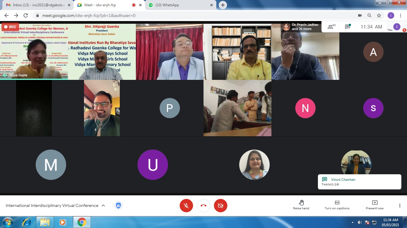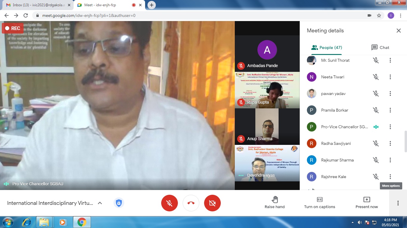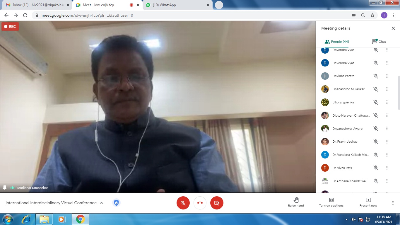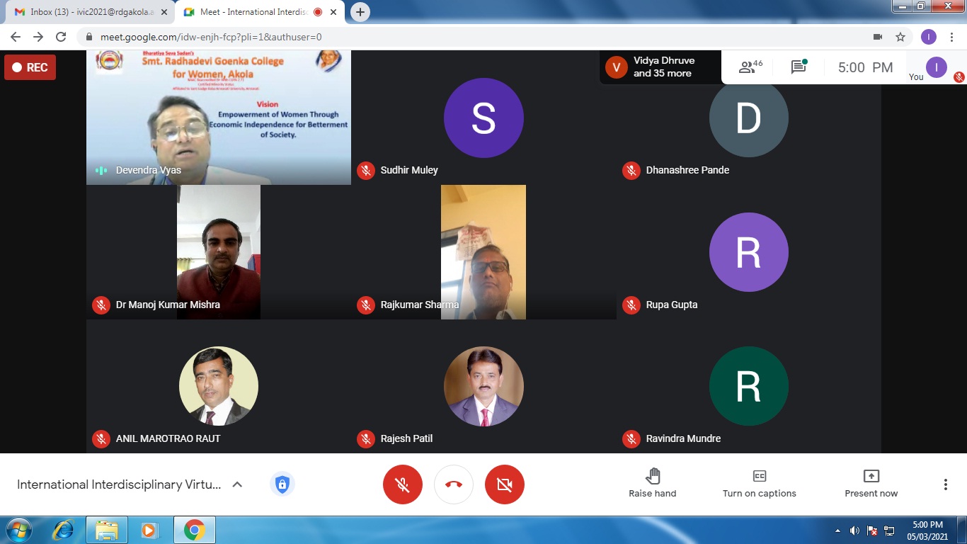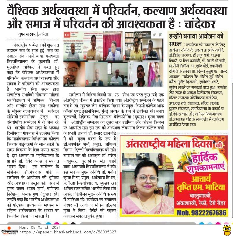 International Virtual Conference was organized by Department of Commerce in association with Indian Accounting Association, Akola Chapter on 5th March, 2021.