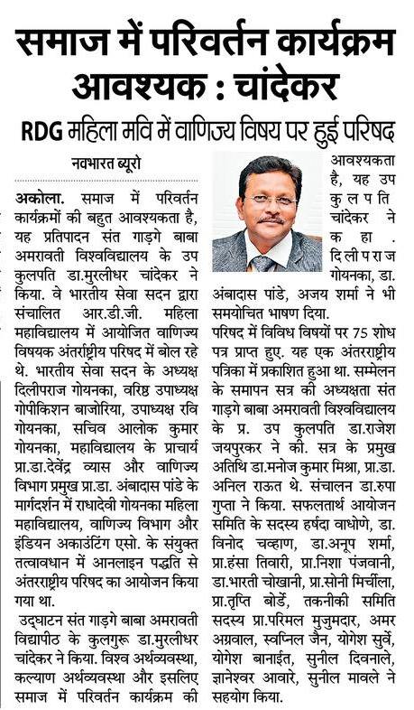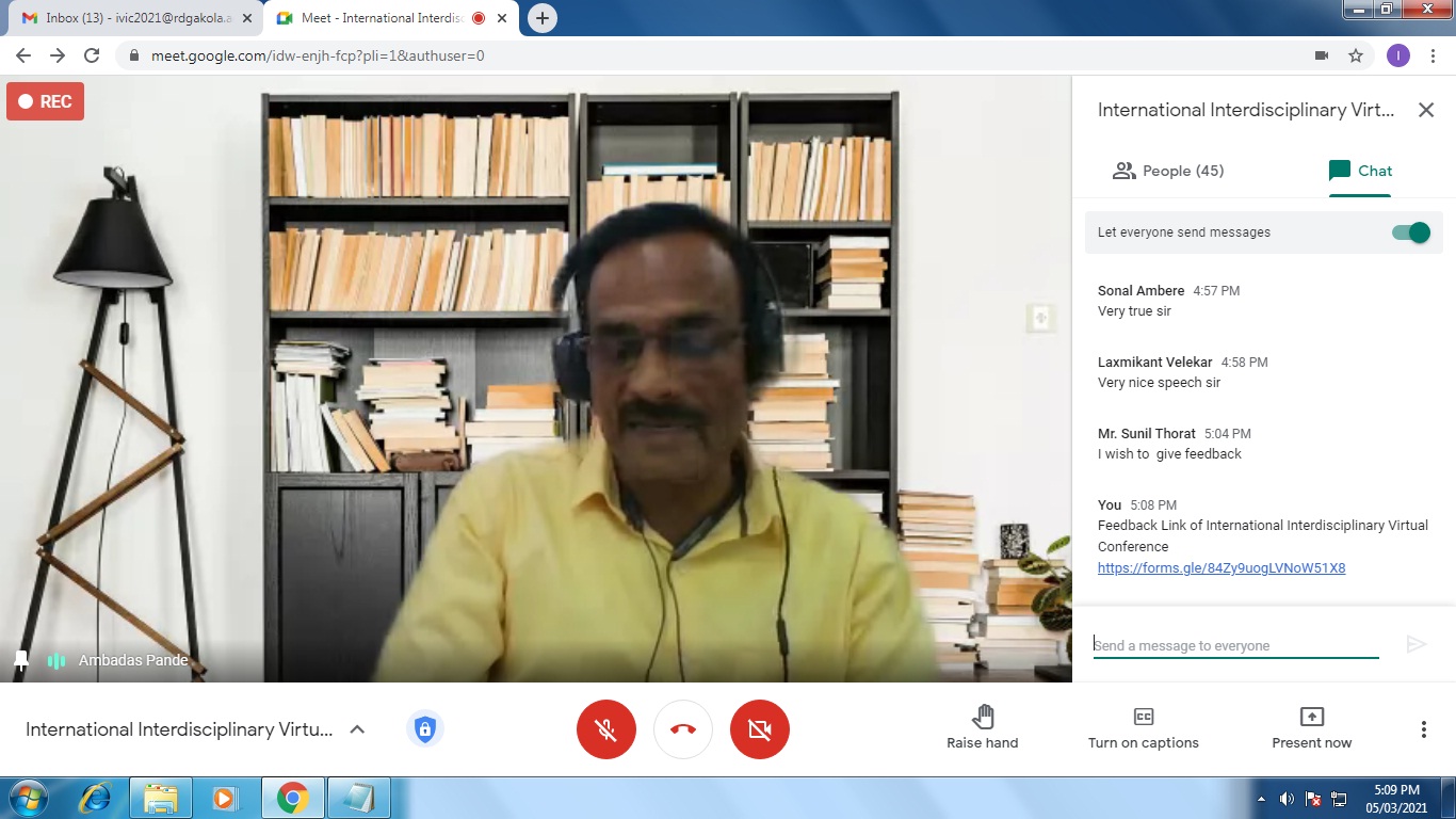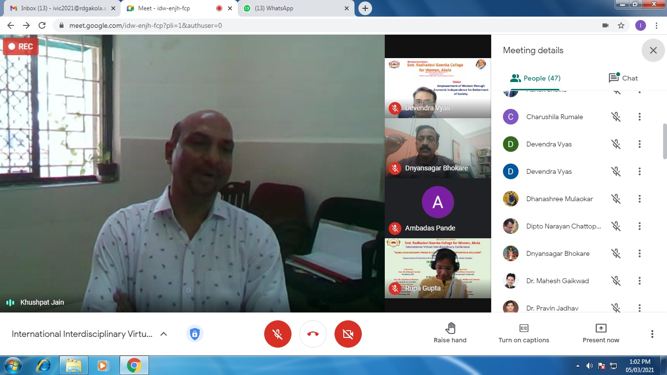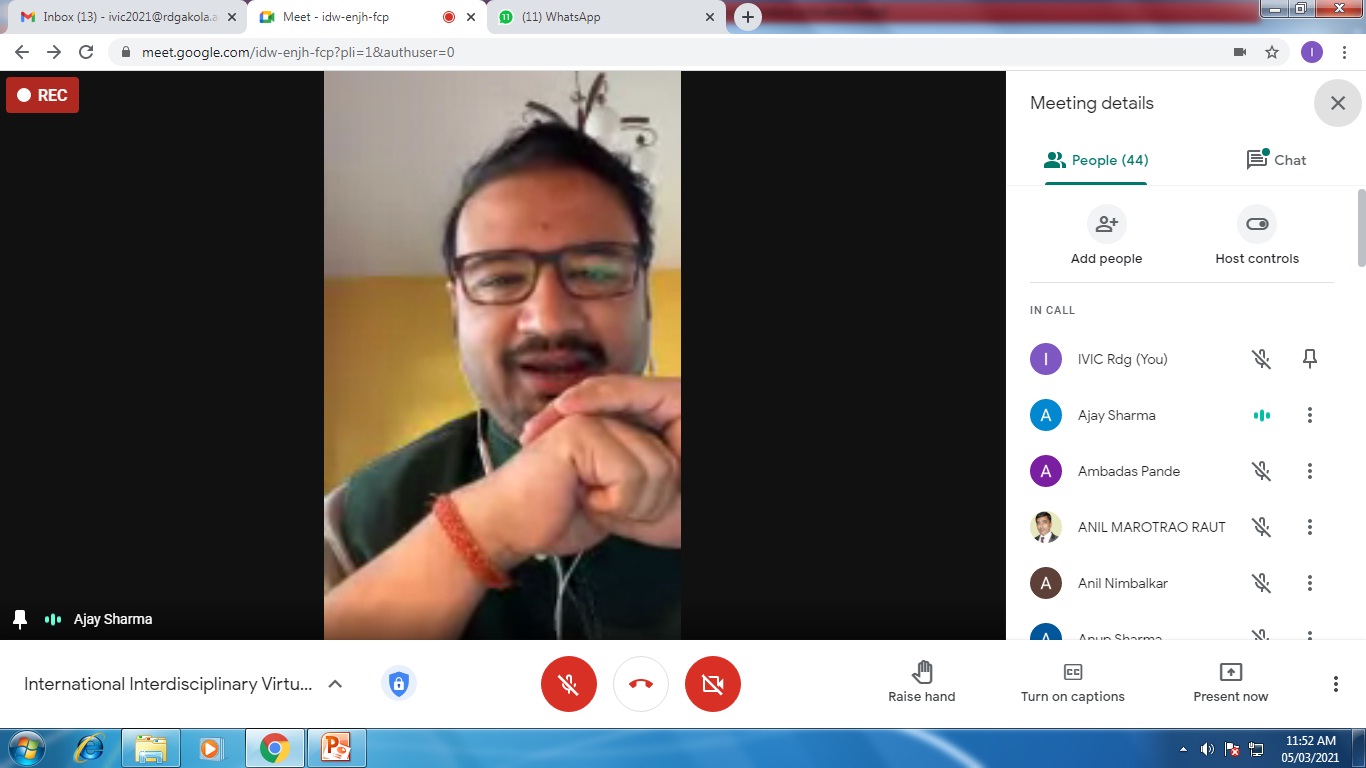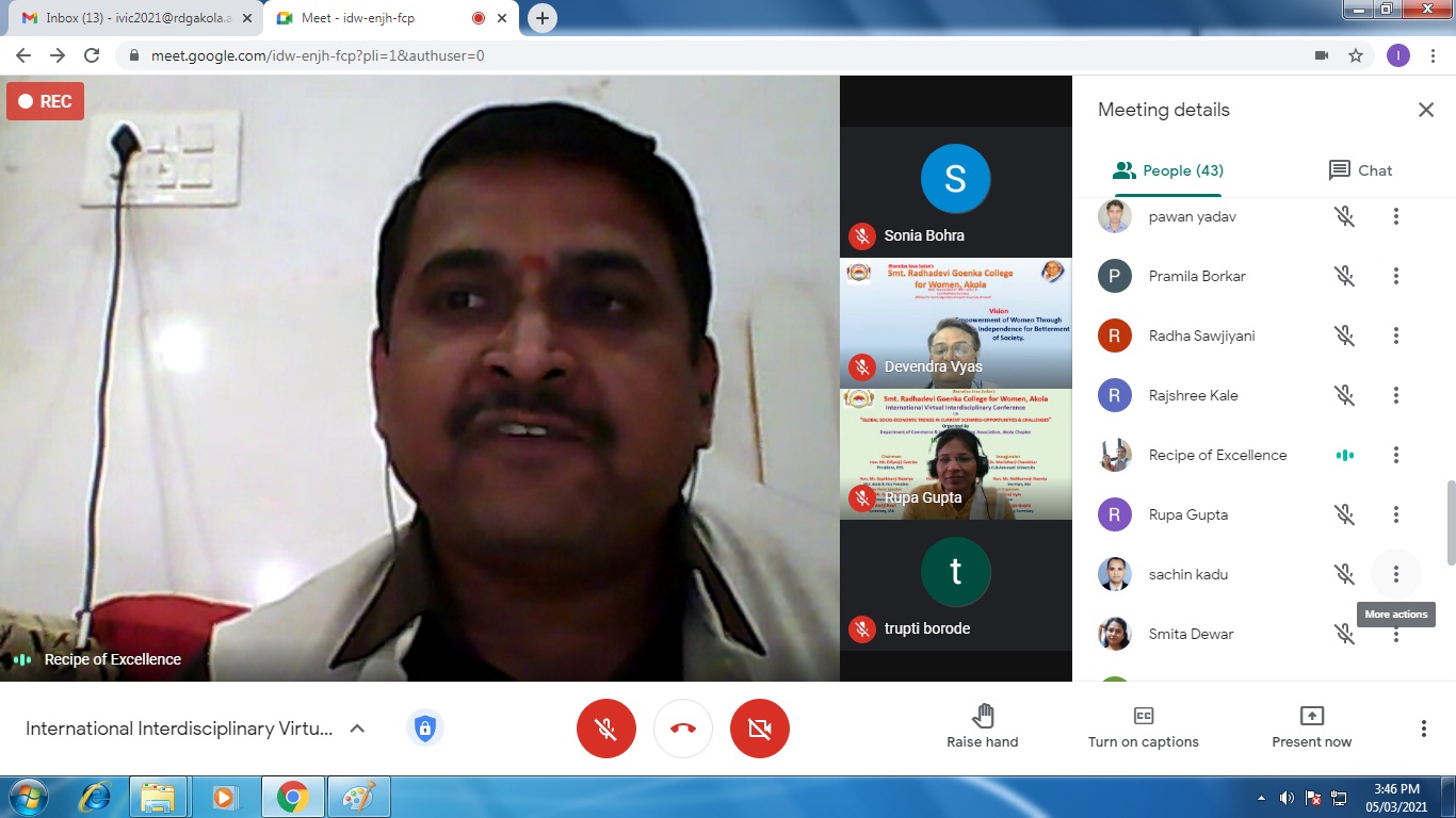 International Virtual Conference was organized by Department of Commerce in association with Indian Accounting Association, Akola Chapter on 5th March, 2021.