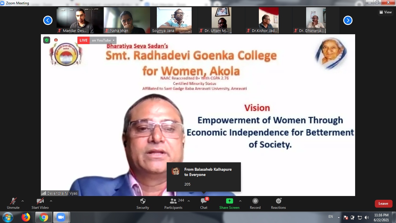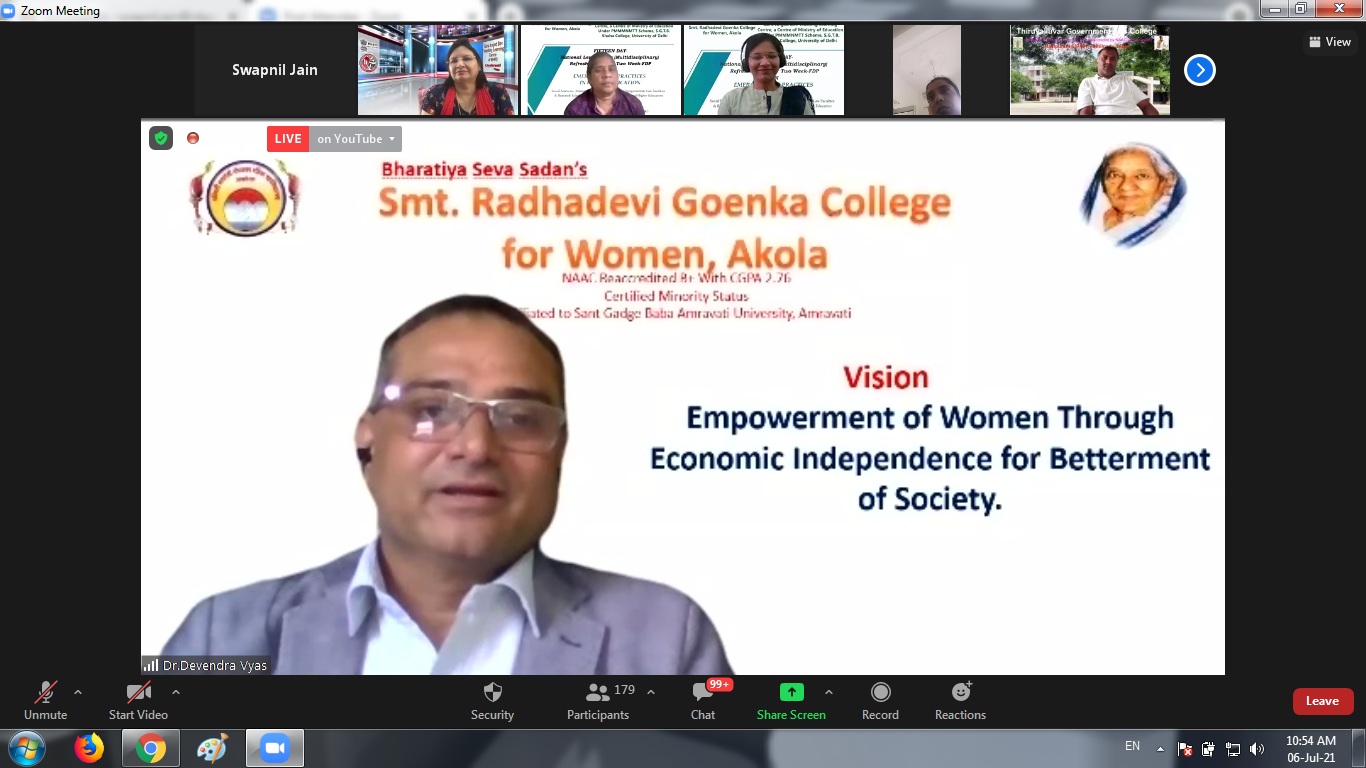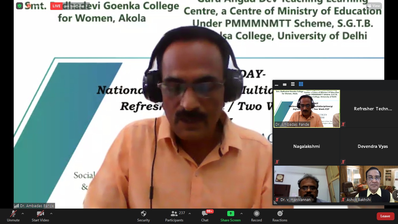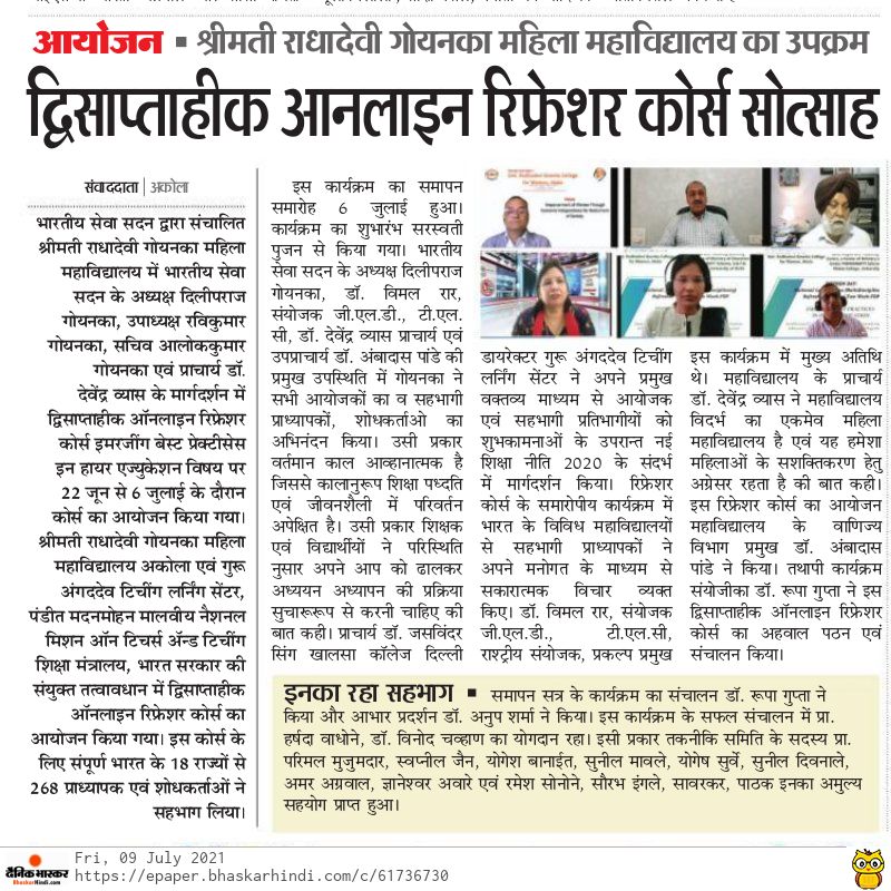 Department of Commerce of Smt. Radhadevi Goenka College for Women, Akola (M.S.) in collaboration with Guru Angad Dev Teaching Learning centre of SGTB Khalsa College, Delhi University (under PMMMNMTT scheme) is organising 15 Days National Level Online Refresher /Two Weeks FDP (Multidisciplinary)on the theme:
