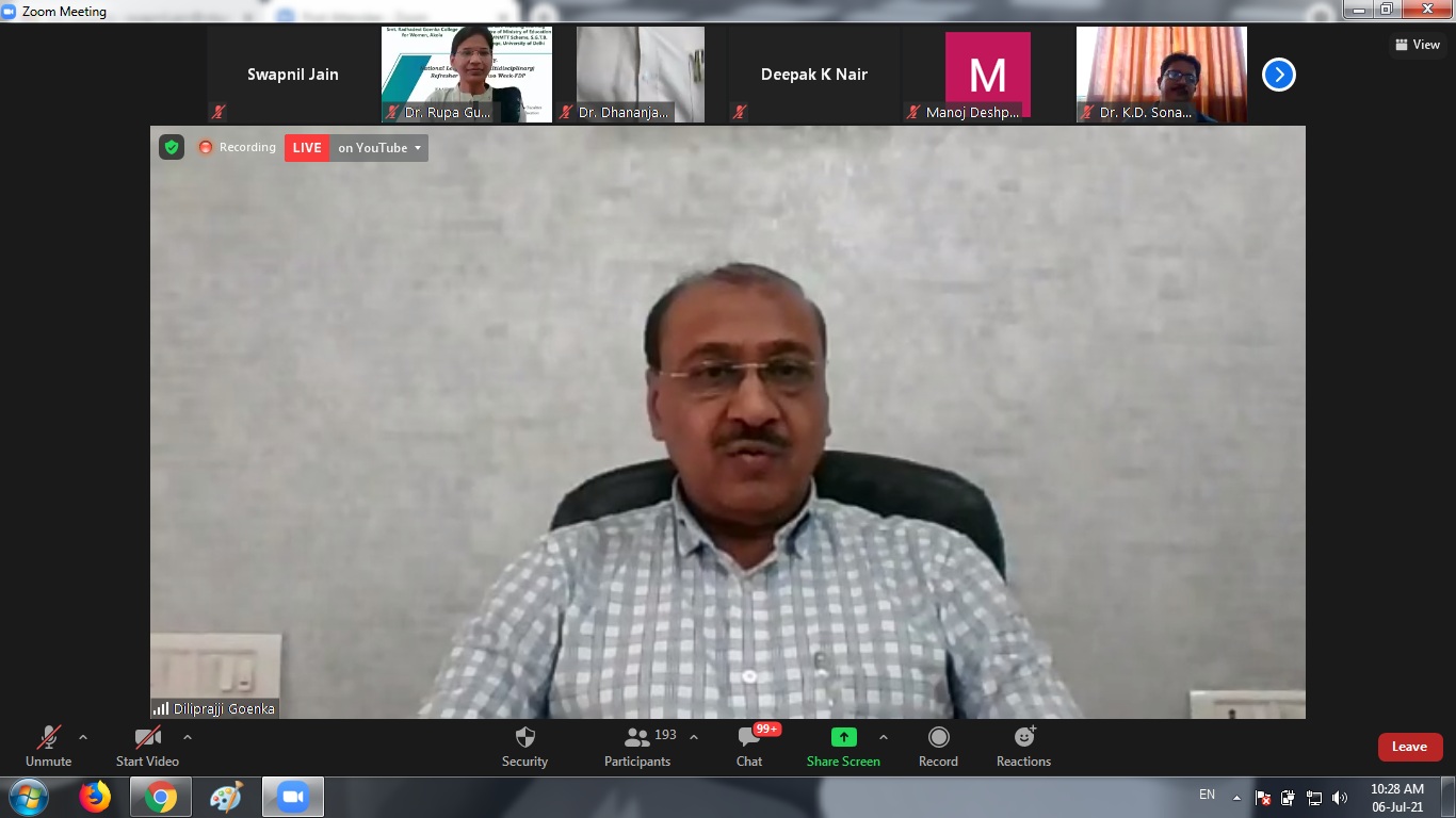 | 5 | 1. Lecture on IPR in Higher Education. 2. Lecture on Management & Administration in Higher Education. | 26th June, 2021 | 1. Prof. Adv. Ganesh Hingmire 2. Dr. Jagdish Vyas | |