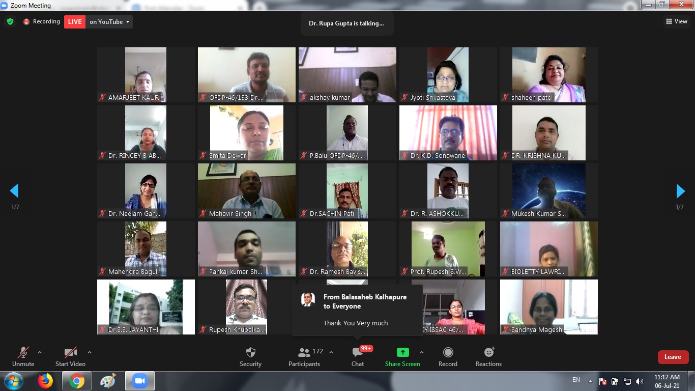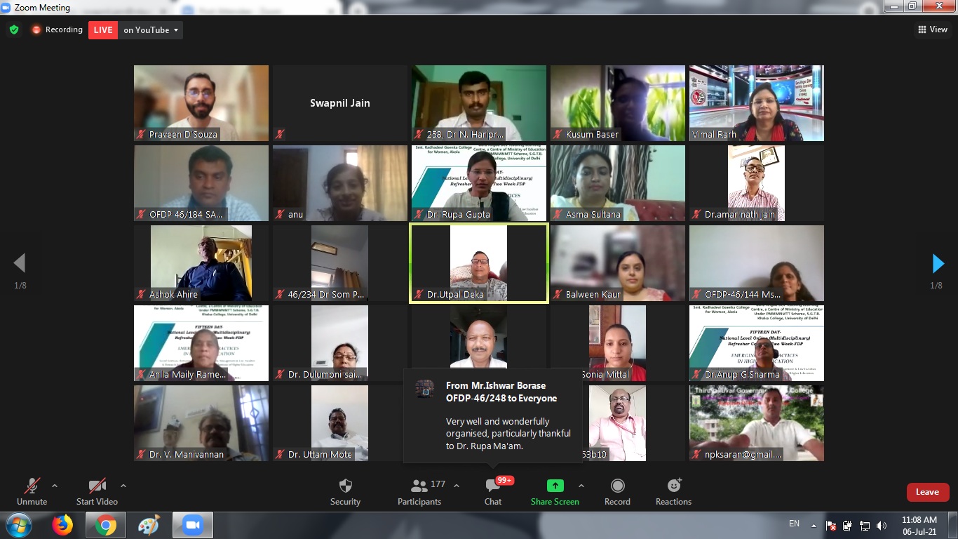 | 7 | 1. Lecture on Empowering Teachers for Technology driven Higher Education 2. Introduction to the SPSS Interface | 28th June, 2021 | 1. Dr. Vimal Rarh 2. Dr. Rupa Gupta | |