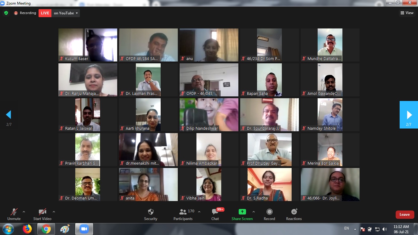 | 6 | 1. Lecture on Development of Questionnaire in Research 2. Lecture on Digital Transformation in Higher Education in India : An Overview. | 27th June, 2021 | 1. Dr. Rajaram. S 2. Prof. Dr. A. K. Bakshi | |