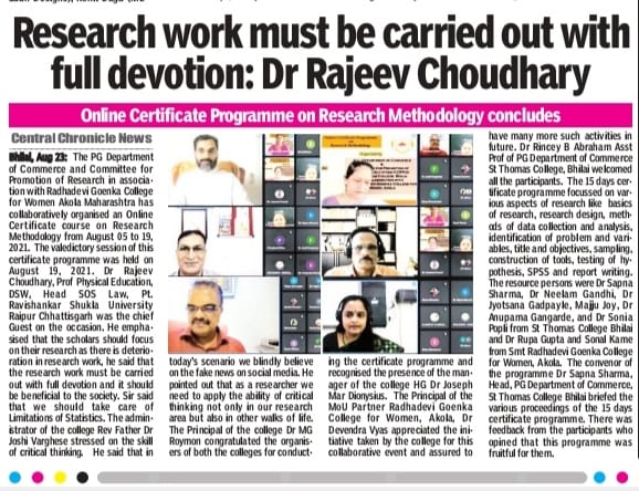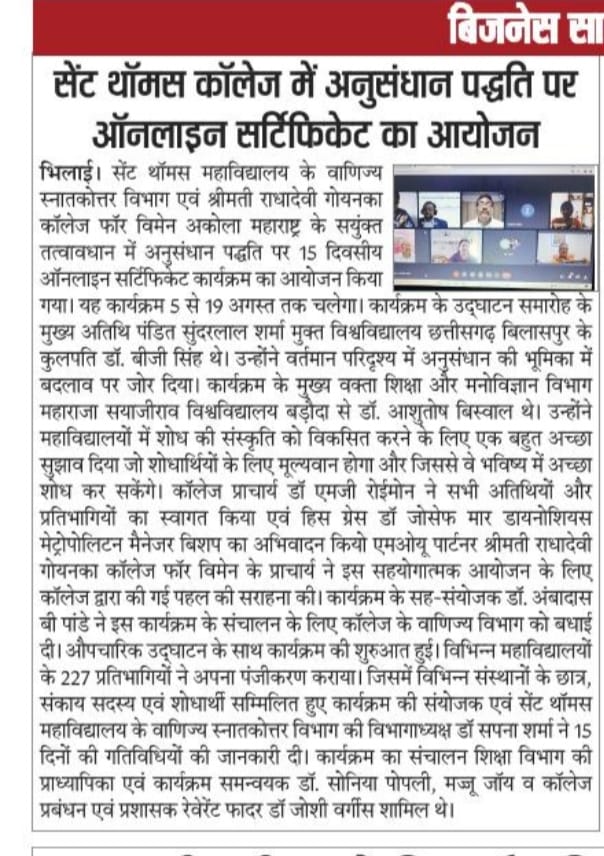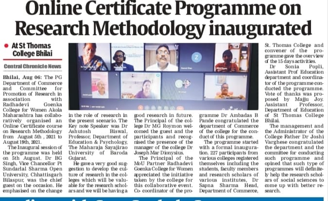 Days Certificate Programme on Research Methodology was organized by Department of Commerce in Collaboration with MOU partner St.