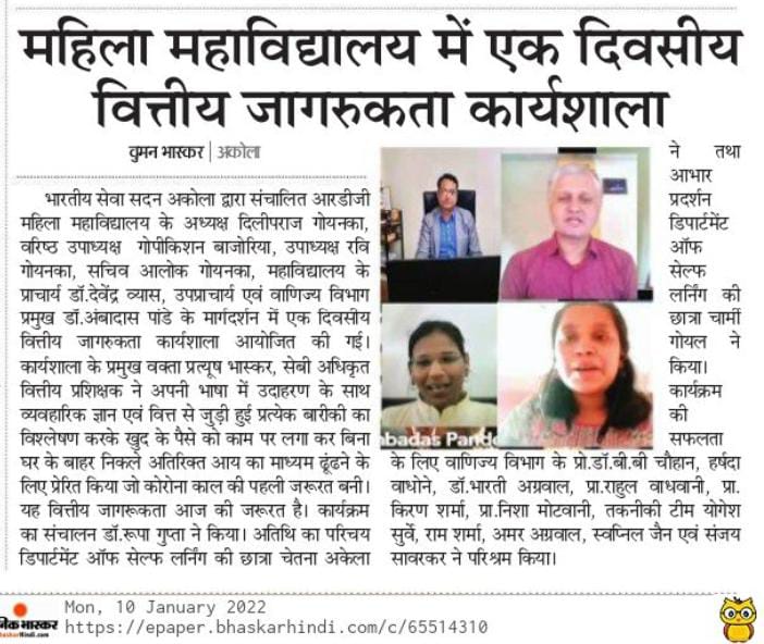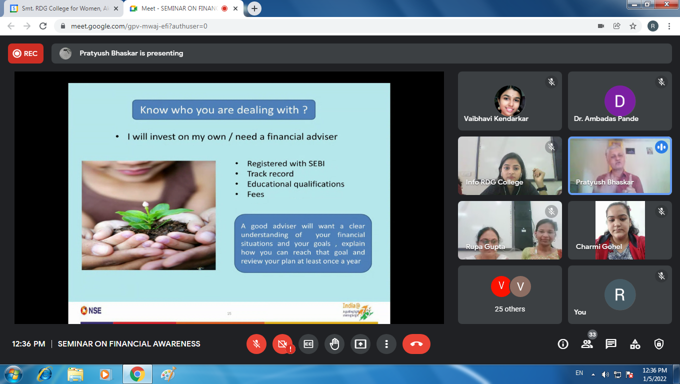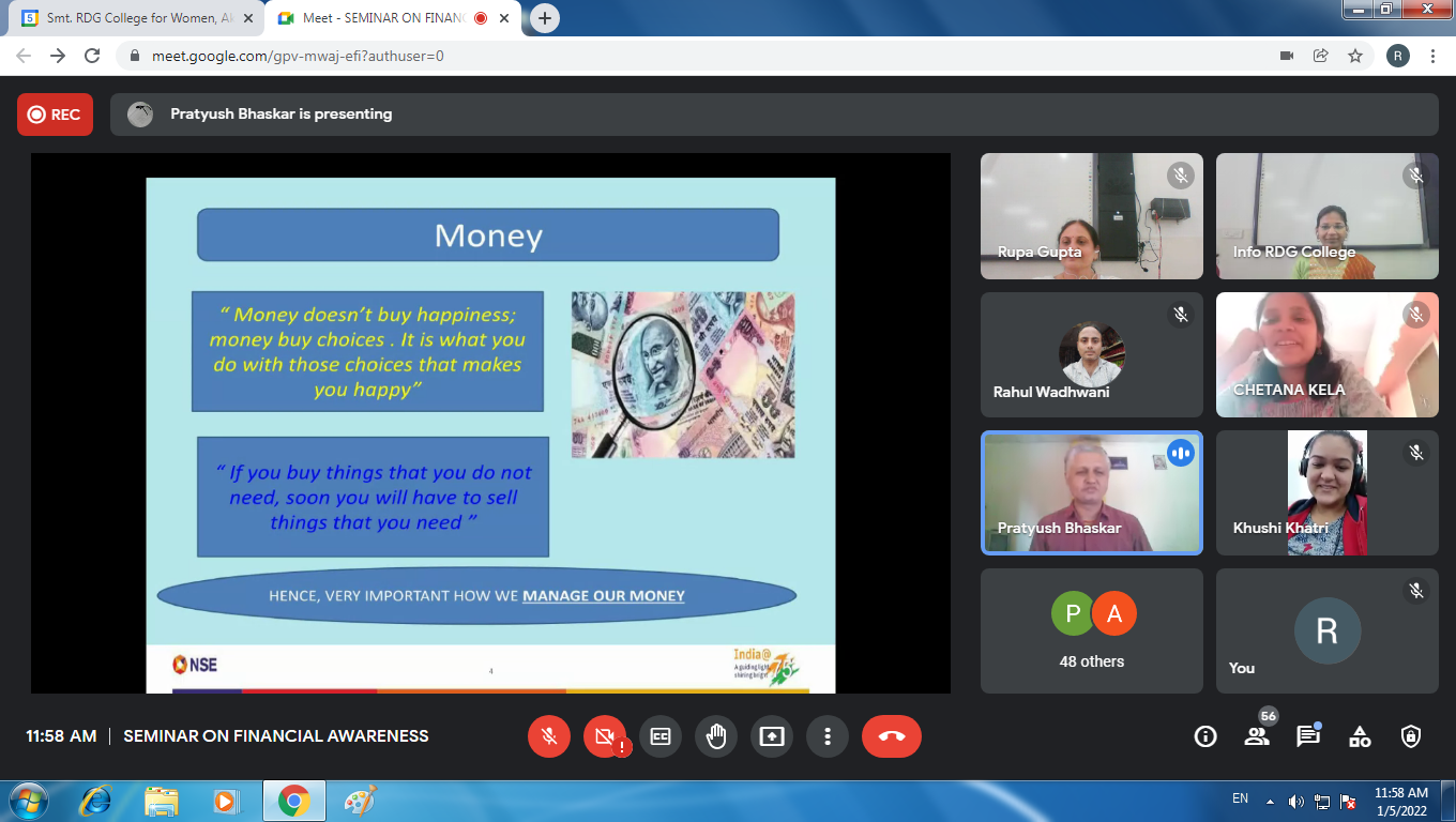 Online Seminar on Financial Awareness Programme in collaboration with SEBI