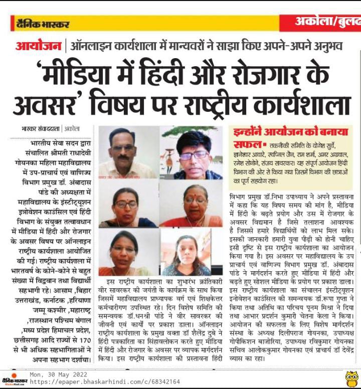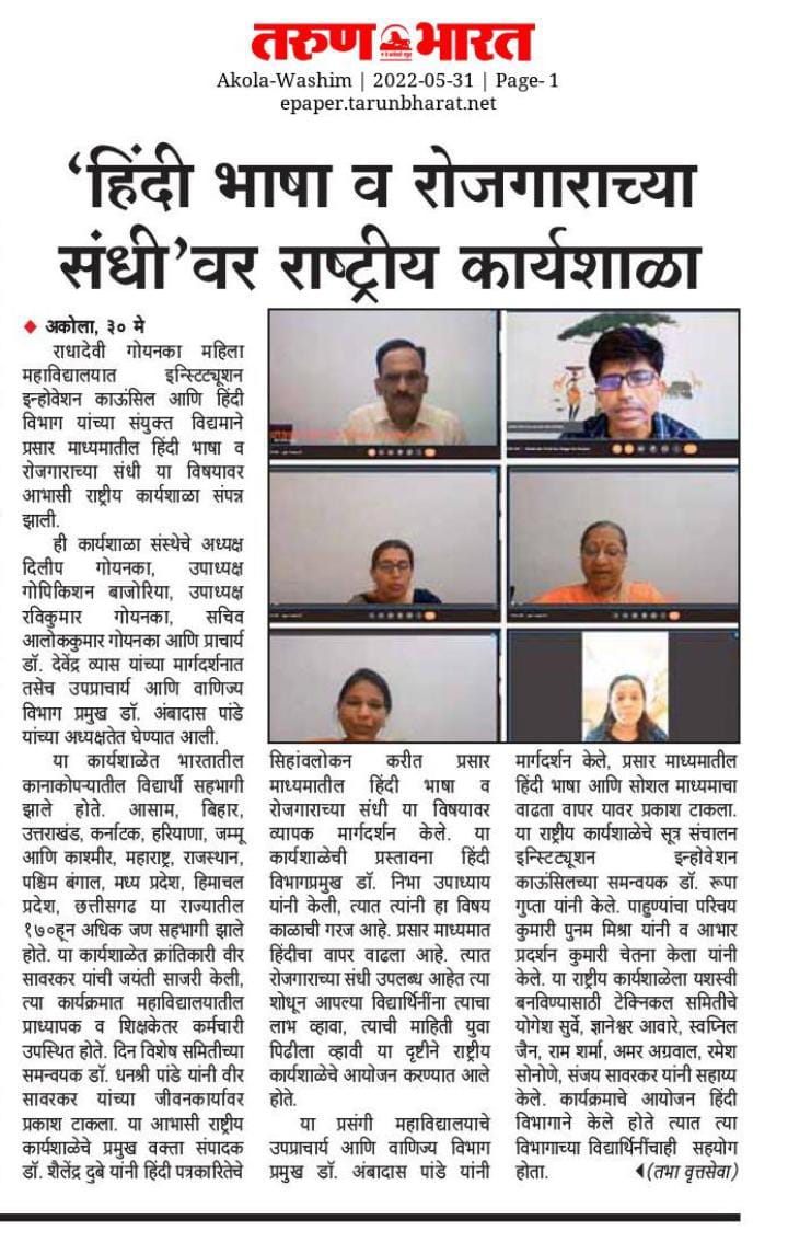 इंस्टिट्यूशन इनोवेशन काउंसिल एवं हिंदी विभाग के संयुक्त तत्वावधान में आयोजित राष्ट्रीय कार्यशाला