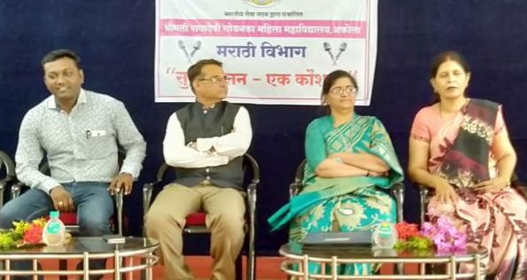 १९६५ सालापासून महाविद्यालय सुरु झाले तेव्हापासूनच महाविद्यालयामघ्ये मराठी व मराठी साहित्य हे विषय पदवी स्तरावर आहेत. मराठी हा अनिवार्य विषय असून ''मराठी साहित्य'' हा ऐच्छिक विषय आहे.